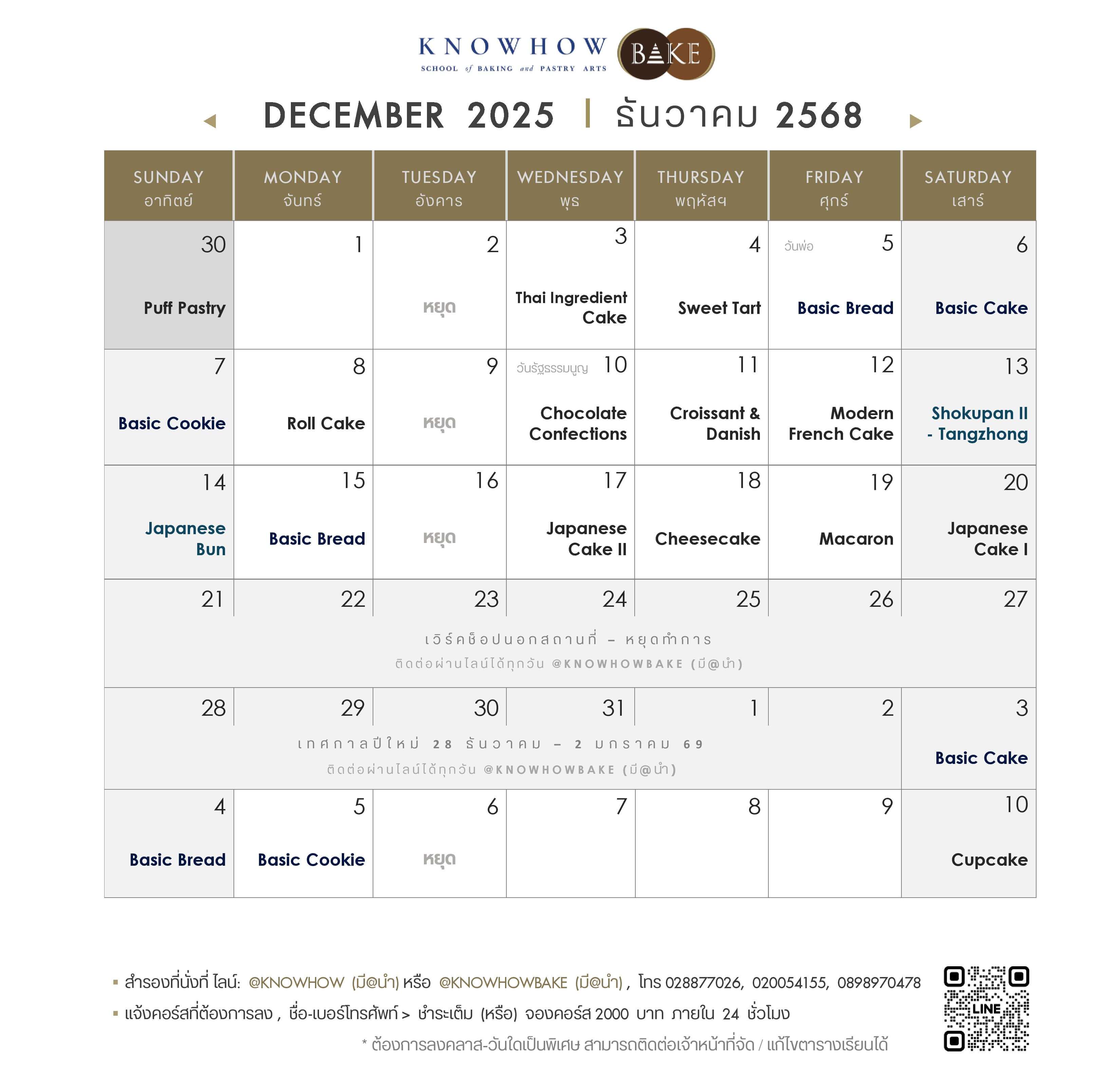 ตารางเรียน ธันวาคม/ 2568